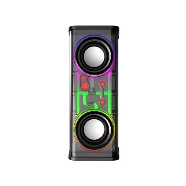 3. Unique Transparent Mecha Design: The portable speaker’s unique design allows for a visually stunning experience with a multidimensional effect that enhances the overall sound quality.